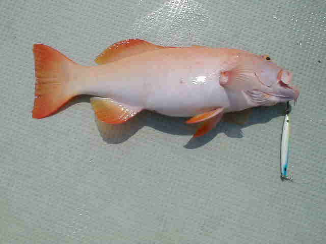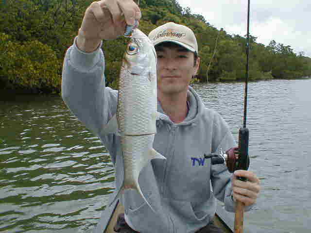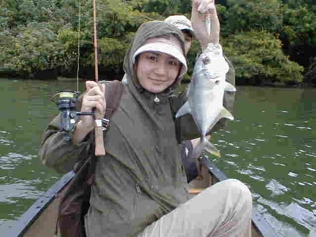 | 1日目はルアー体験コースでリーフの小物ス釣り まだ時期がはやくフエダイの数が少なく、ポツリポツリ でしたが、カンモンハタは良く釣れました。 リーフの魚達も深みから浅瀬えとだんだん上がってき ており、これからが面白そうです。 2日目はマングローブフィッシング。 いきなり田中さんがパシェフィックタ−ポンと釣り上げ 大興奮。続けて彼女にもヒット2匹ともグットサイズの マングローブフィッシュ。この日は雨も降っており、後がなかなか続かなかった物の、大自然の川を堪能していました。 |