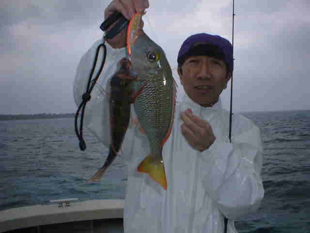 | ん〜〜〜天気が悪い・・・ 前線の影響で北風ピュ〜ピュ〜。 3日間の釣行の内2日間リーフのライトタックルを 楽しんでいただきました。 悪天候ににもかかわらず、釣果はよかった。 フエダイはプリスポーンで活性高し、なかなかです。 年2回の釣行今度は6月にお待ちしています。 悪天候の中お疲れさまでした。 |