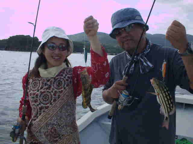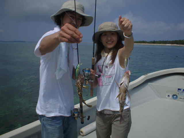 | 去年にリーフのライトゲームにはまり今年も来て頂きました。 しかしよく釣りました。彼女のワンキャストワンヒットで幕を開け、お二人でアジゲット、そして彼氏の ワンキャストワンヒットで幕を閉じました。何匹釣ったか分からない位でした。 ヒットルアーは水深のある(3m位)所ではクルクルにヨレヨレがいい釣果を上げていました。 |