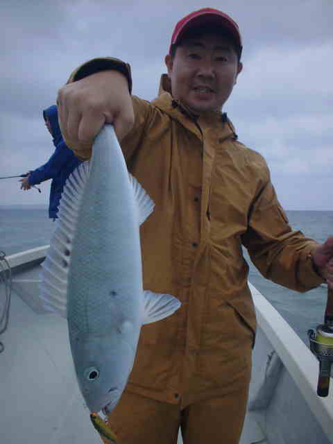 | 台風2号の影響で滞在中4mのうねり。 風がない為GTゲームは成立しましたが、西から南のGTポイントの根の上はうねりが大きくブレイクしている。 そんな中サワちゃんに8kほどのGTを上げ、活性が上がる。これがファーストGTおめでとう!!。 ポイント移動後またまたサワちゃんにヒット、慎重に上げ今度は20k弱の良形GTでした。 皆にGTのバイトはあったものの、上がったのは2本でした。 台風の影響の中皆さんお疲れ様でした。 |