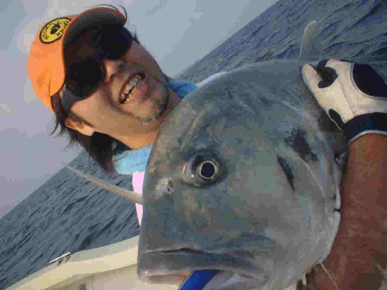 4日間のGT狙いであったが、GTキャッチは1匹・・・・ しかしバイト数はかなりあったり、皆ヒットまで持ち込めた。 1日目午前中に戸田さんのペンシルにヒット、ずっこけながらも強烈フッキングしたが、ポンピングできずラインブレーク・・・。夕方も戸田さんに2尾のGTがチャイス&バイトしたがフックングまでいたらなかった。 2日目ポイント到着後、桑山さんサワちゃんとバイト、何故か乗らない。 次に戸田さんにもバイト、しかしまたのらない・・・。やっとサワちゃんヒット したが強めのドラグ設定もなんなく出され、フックアウト。その後も数回の バイトが皆にあったがラインブレークなどでキャッチならず。 3日目今日こそはGTの顔を見たい。午前中はノーバイトでいまいちの活性。午後リーフエッジ狙いで桑山さんにヒット、フッキング後慎重にポンピング 今度こそはと思った瞬間フックアウト・・・なぜ・・・・。 そのまま夕方まで反応が無く、最後の一流しでやってくれたのがサワちゃんでした。船べり近くでヒット、さすが経験者慎重なやり取りで見事 GT22kをキャッチでした。よかったよかった。 4日目まだ釣っていない3人はやる気まんまん、しかし無常にもGTは姿を 見せず、バラフエやダツの姿しか見れない。そして夕方待望のGTバイト。 桑山さんのトビペンに巨大GTがヒット!!物凄い水しぶきを上げ手前に走ってきた。すかさずフッキングしロッドエンドをギンバルにセットしさーポンピングだ〜〜〜と思ったら・・・・あらま〜〜またまたフックアウト。 GTFは難しい〜〜〜と思った釣行でした。 |