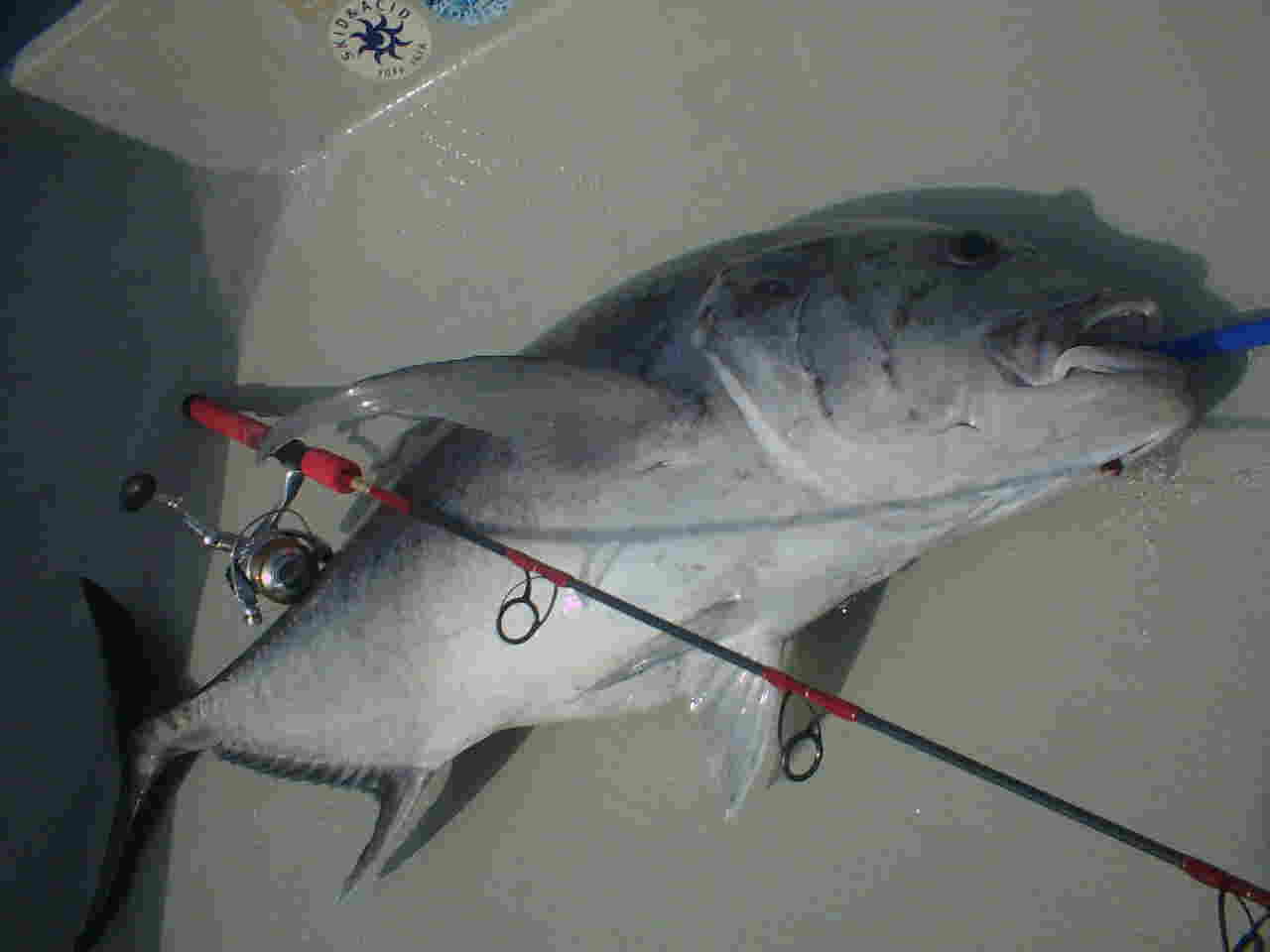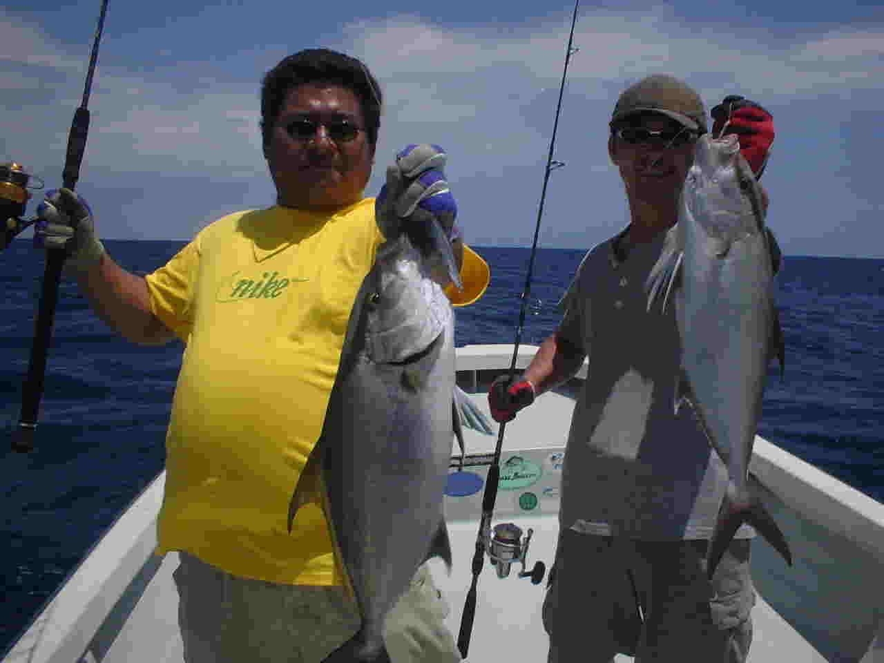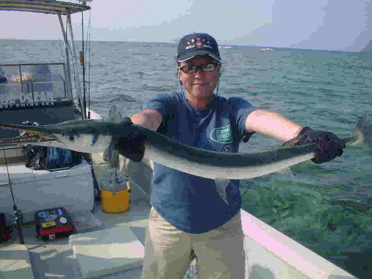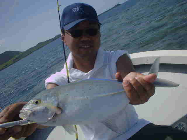 | 2日間のジグングチャーター。 1日目天気も凪、オガン回りでジギングスタート。 小潮回りだがいい感じに潮が走りベストだった。底物や3k青物(ツムブリ・カツオ)などの反応がよく、ほとんど入れ食い状態!! ジギング初挑戦の大熊さんは、おはまりモード。しかし狙いのイソマがこない。ツムブリをかけ上げていると、後ろには20k〜30k級のイソマが付いて来る。どうしても先にツムブリが釣れてしまう為、狙いをイソマに絞り350gのロングジグで攻める。何度かあたりがあったがフッキングならず。 しかしドラマは夕方の一流し、PE2,5号のライトロッドに強烈なアタリ、ファーストラン50mで魚が止まり、間違いなくイソマと確信し慎重にファイト、ゆっくり上げ出されては又巻きの攻防30分上がってきたのは、巨大GT40k・・・・・・うそ〜〜〜でかすぎる。ONEOCEAN TRICK62THでステラ6000に2,5号でGT40K。おめでとうございます。大熊さん!! 2日目は島周りでカンパチ狙い、カンパチ狙いでボウズなしと言う藤井さん。さすが仰るとおり、カンパチゲット。この日も夕方にドラマ?が。 おそらく10kクラスのカンパチをヒットさせ途中○ャー○アタッ○、いい所にかかったのか、そのまま1時間ファイト・・・・40mラインから全然上がってこない、最後すごいスピードでラインを出しブレークしました。 ほんとお疲れ様でした。 |