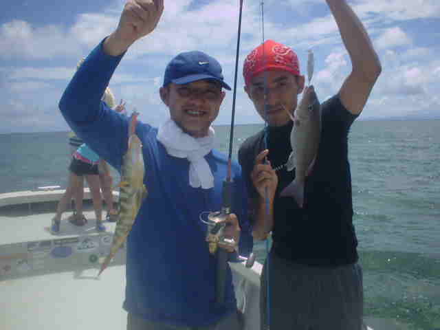| 今年の梅雨はよく雨が降り連日雨の中のGTFでした。 ゲストの中瀬君は8年前に西表島に1年ほど住んでいて、その頃からGTを狙っていたが釣り上げる事ができなかった。 それから何度か島に訪れGTを狙い続けたが、ヒットするもののキャッチまでいたらなかったのであり。そして今年念願のGTを見事キャッチできた。 釣り上げた時の喜びが耳からはなれません。ホントおめでとう中瀬君。 |
