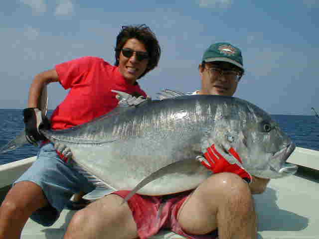 今年もGT絶好調、写真にはないのですが、このほかにも GT20k、18k、10kと上がり、他にラインブレイク、ミスバ イトを入れると1日10回以上、かなり良い確率です。 メソッドはペンシルのスロージャーク、ポッピングより良いよ うです。 西表では激しいポッパーアクションより、スローのダートアク ションの方がバイト数が、かなり高いです。 ワンオーシャンではロッドに続きニュールアーを構成中です。 ご期待下さい。 |