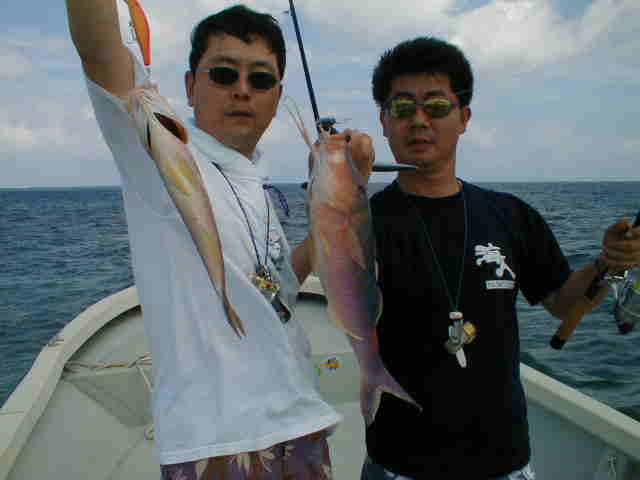 群馬県から来られた小野沢さん清水さん普段はバス釣りを メインに狙っていて、なかなかのロッド捌きでした。 |