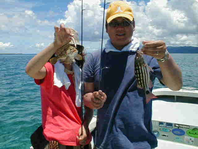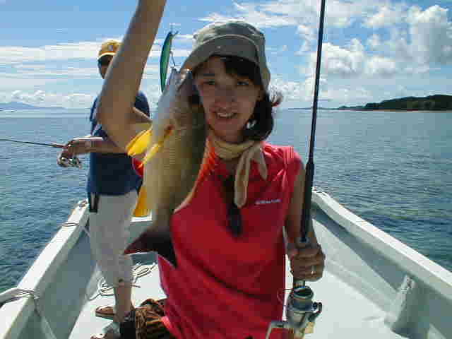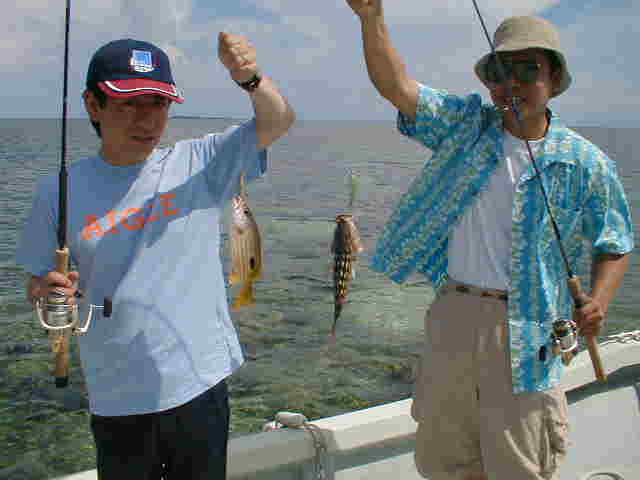 今回は新婚旅行で西表島に遊びに来られた。須佐ご夫婦 釣りは始めてででも、ガンガン釣っていました。 |