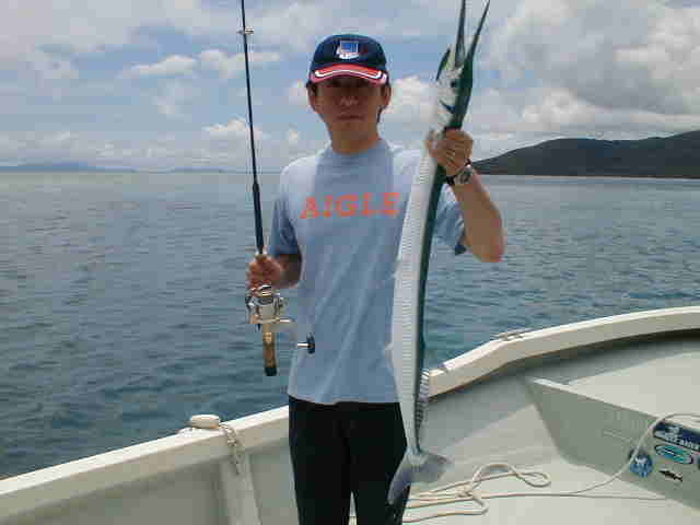 フエダイを何十匹と釣らてれ午後からはダツゲームにはまり 大興奮でした。バスでは絶対味わえない引きですから |