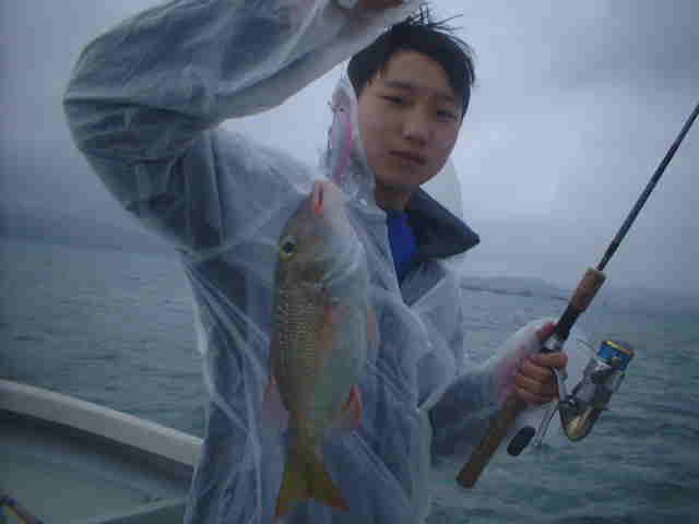 | 2日間の予定でしたが悪天候の為一日の釣り。 風が北に回り最悪の天気・・・今年中学に上がる息子さんも頑張って釣っていました。 大雨にそり表層水温が急低下、トップは厳しかったがSミノーで勝負。 4月に入り水温24℃雨が続くと22℃になる。 |
