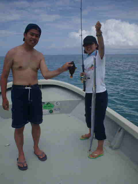 | クラブダサーでお馴染みの北村さんがまたしてもダサーにをゲット? 相乗りした森田夫妻がクラブダサーに入会です。 九州男児の森田さんは八重山におはまりモード、無邪気に釣っている姿が印象的でした。 来年またお待ちしています。 |