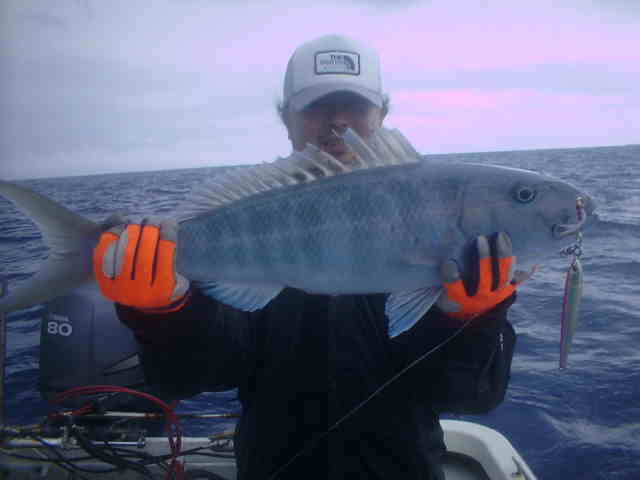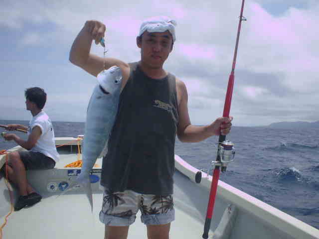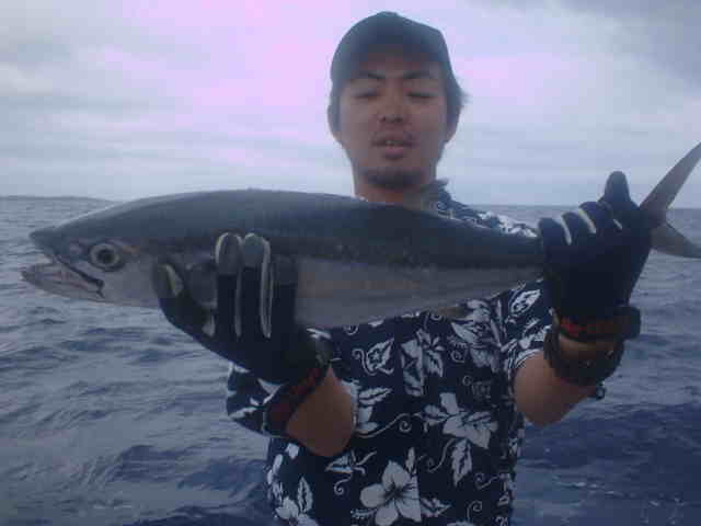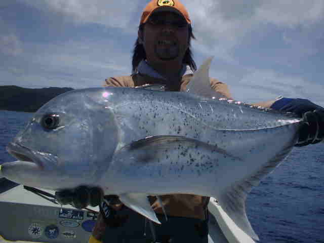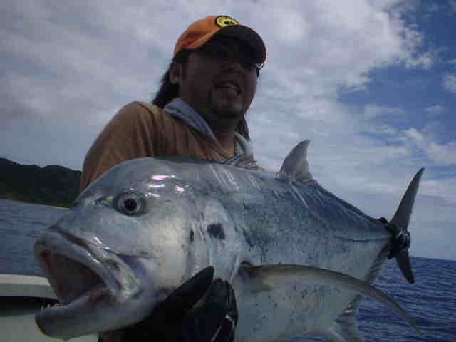 | 台風2号の影響で滞在中4mのうねり。 風がない為GTゲームは成立しましたが、西から南のGTポイントの根の上はうねりが大きくブレイクしている。 そんな中サワちゃんに8kほどのGTを上げ、活性が上がる。これがファーストGTおめでとう!!。 ポイント移動後またまたサワちゃんにヒット、慎重に上げ今度は20k弱の良形GTでした。 皆にGTのバイトはあったものの、上がったのは2本でした。 台風の影響の中皆さんお疲れ様でした。 |