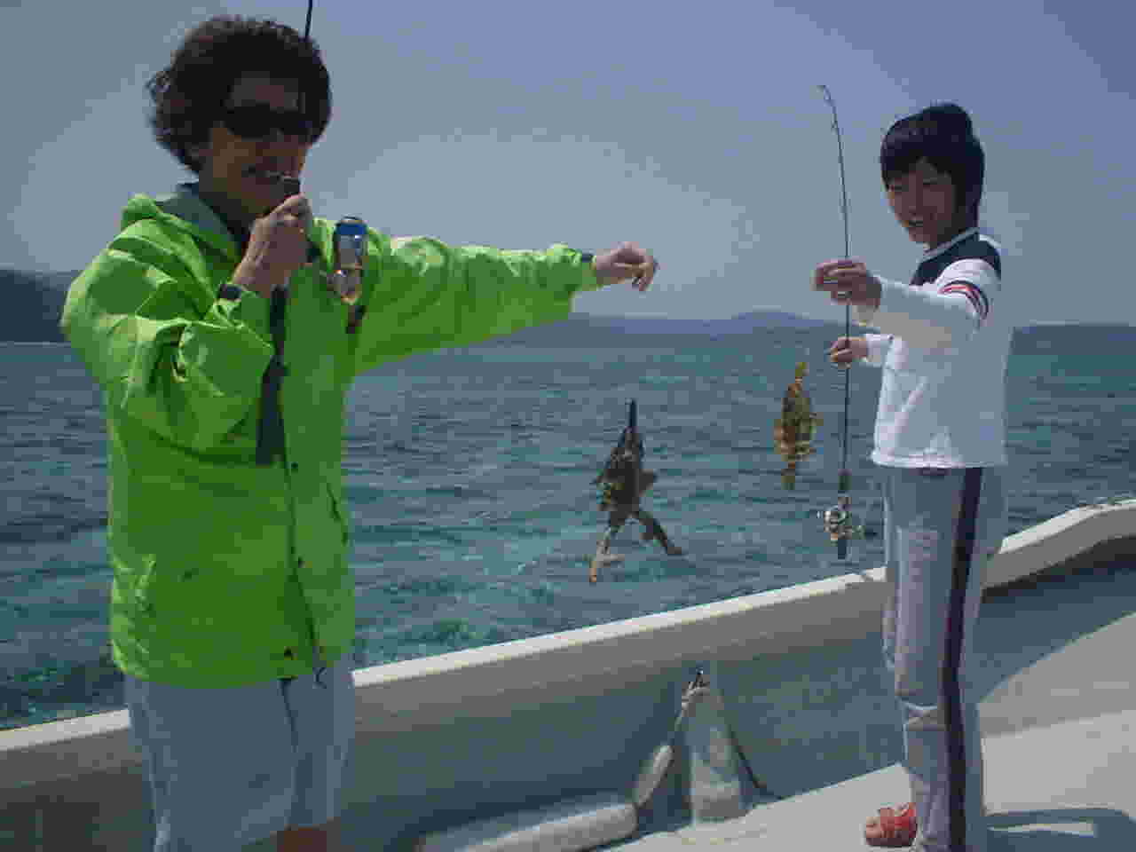 | 軽井沢からおこしの浜野さんご家族。泳いだり釣りしたりと西表の海で大はしゃぎ。 家族全員での旅行はなかなか大変ですが、お父さんの段取りでいい思いで作りが出来たようです。 釣りでは長男が主役、次から次へと釣っていました。 |