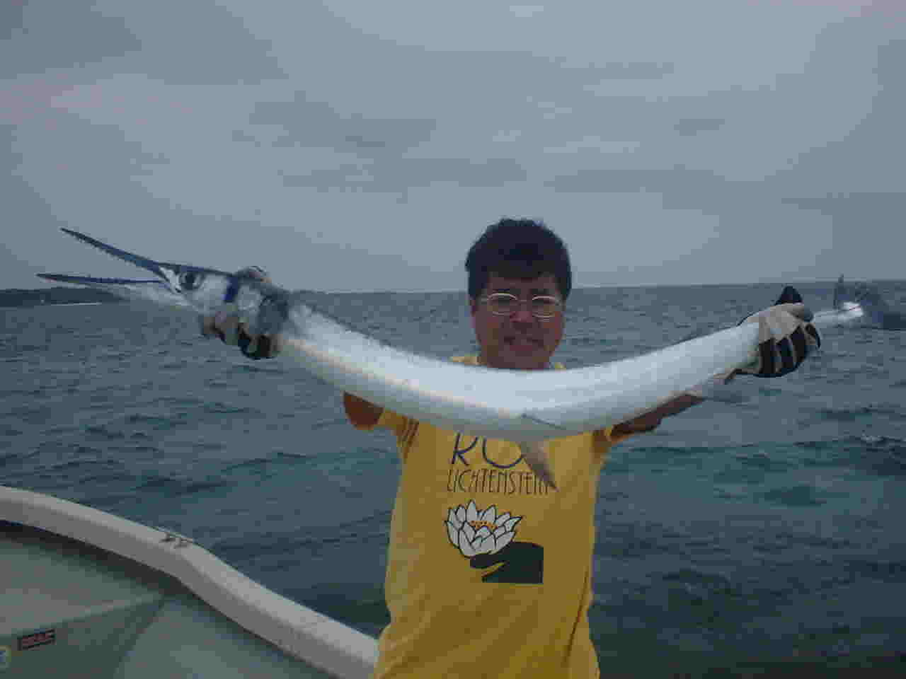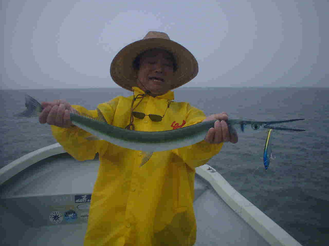 | クラブダサー12号下島さん念願のダツ&アジをゲット!! 今回はダツ&アジ用にONEOCEAN TRICH60Lを購入。ルアーも オリカラレッペと決め挑んだ。 ダツはトップに反応が良くバイト数もかなり多かったが、 なかなかフッキングしないのである。コツはあわせない事 確実にのるまであわせない。むこう合わせでもOK |