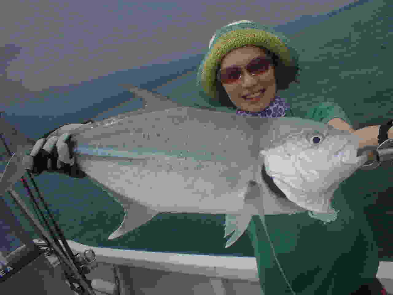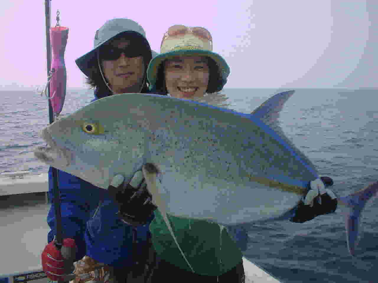 | ミーミーズ、ひろみちゃん頑張りました。 彼氏ゴー君を横目に、GTバイト3〜5発キャッチはカスミアジにバラフエダイ でしたが、何故かひりみちゃんにしかでないのである。 弱弱しいポッピングが効いたのか、腕なのかは不明ですがフッキングも ファイトもお見事でした。 実は写真の3匹JGFAウーマンの記録魚だった・・・・ |