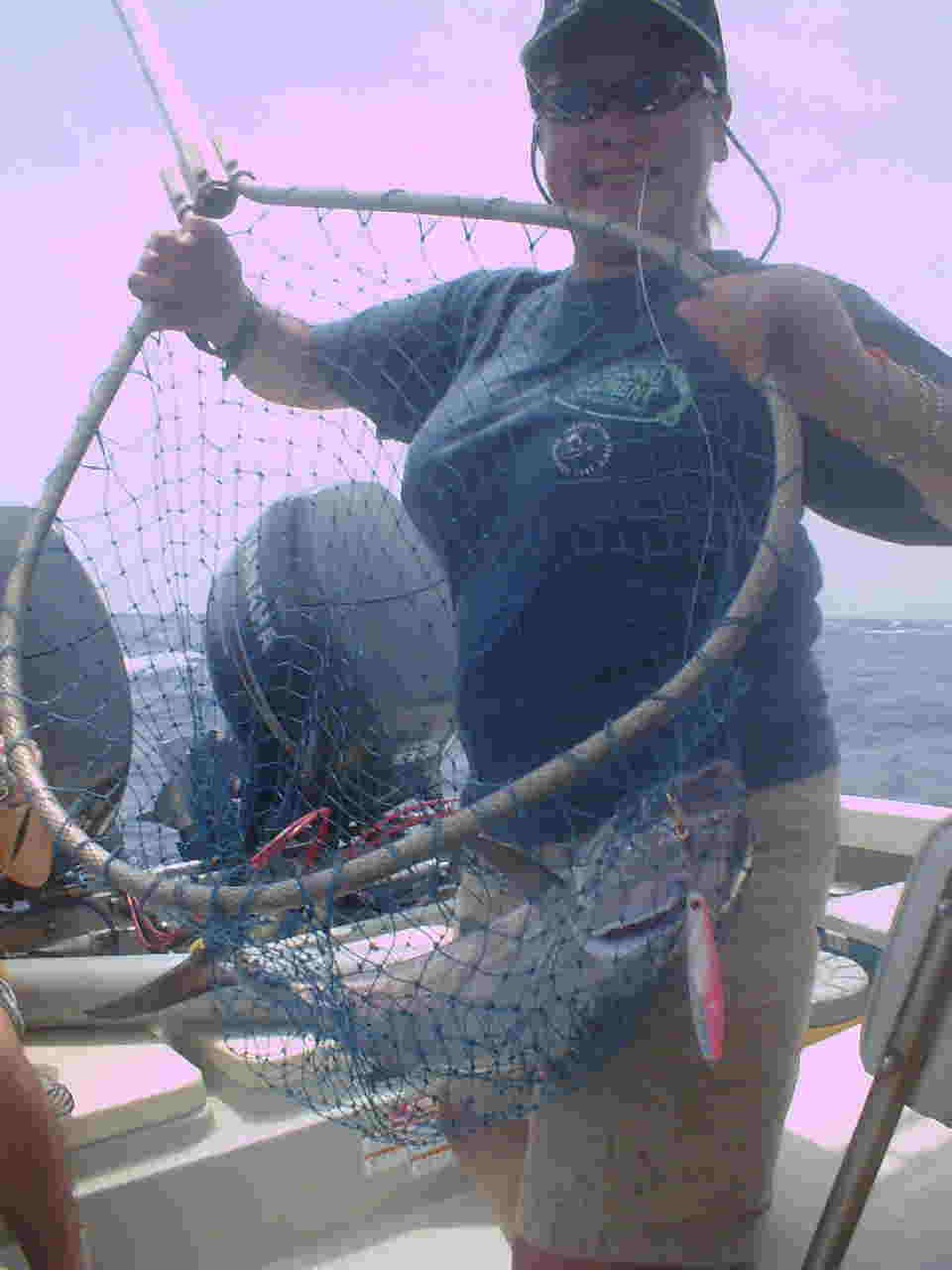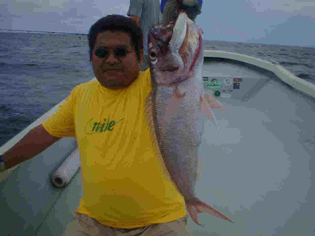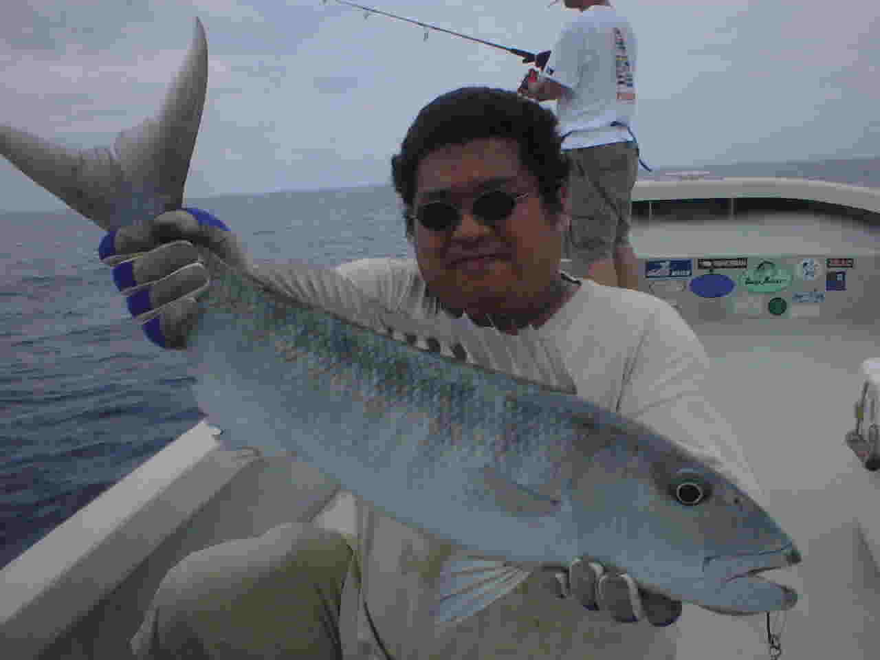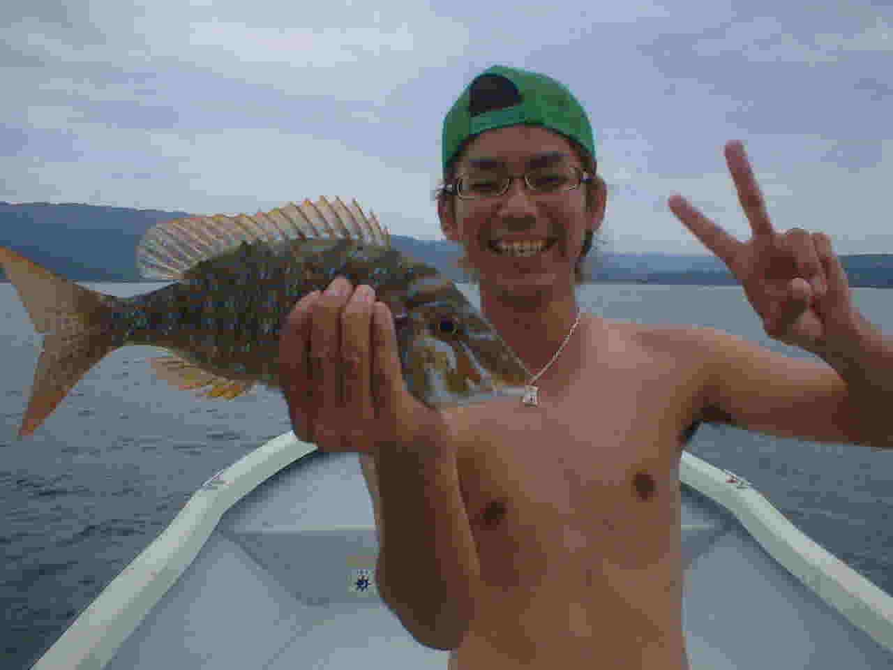 | 2日間のジグングチャーター。 1日目天気も凪、オガン回りでジギングスタート。 小潮回りだがいい感じに潮が走りベストだった。底物や3k青物(ツムブリ・カツオ)などの反応がよく、ほとんど入れ食い状態!! ジギング初挑戦の大熊さんは、おはまりモード。しかし狙いのイソマがこない。ツムブリをかけ上げていると、後ろには20k〜30k級のイソマが付いて来る。どうしても先にツムブリが釣れてしまう為、狙いをイソマに絞り350gのロングジグで攻める。何度かあたりがあったがフッキングならず。 しかしドラマは夕方の一流し、PE2,5号のライトロッドに強烈なアタリ、ファーストラン50mで魚が止まり、間違いなくイソマと確信し慎重にファイト、ゆっくり上げ出されては又巻きの攻防30分上がってきたのは、巨大GT40k・・・・・・うそ〜〜〜でかすぎる。ONEOCEAN TRICK62THでステラ6000に2,5号でGT40K。おめでとうございます。大熊さん!! 2日目は島周りでカンパチ狙い、カンパチ狙いでボウズなしと言う藤井さん。さすが仰るとおり、カンパチゲット。この日も夕方にドラマ?が。 おそらく10kクラスのカンパチをヒットさせ途中○ャー○アタッ○、いい所にかかったのか、そのまま1時間ファイト・・・・40mラインから全然上がってこない、最後すごいスピードでラインを出しブレークしました。 ほんとお疲れ様でした。 |