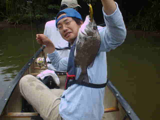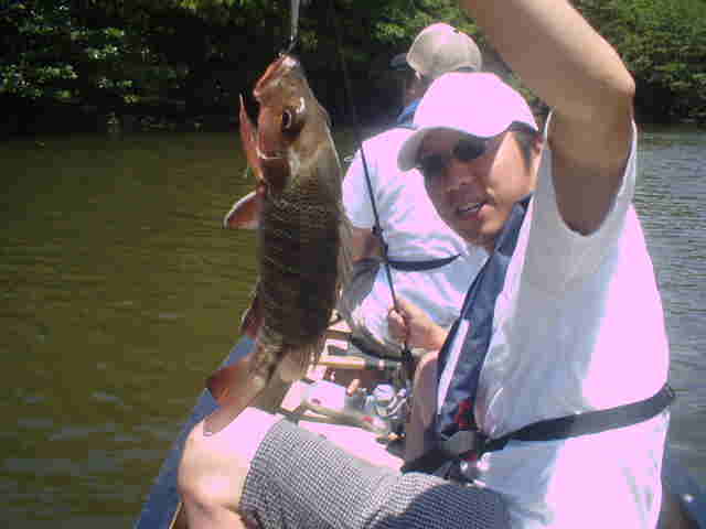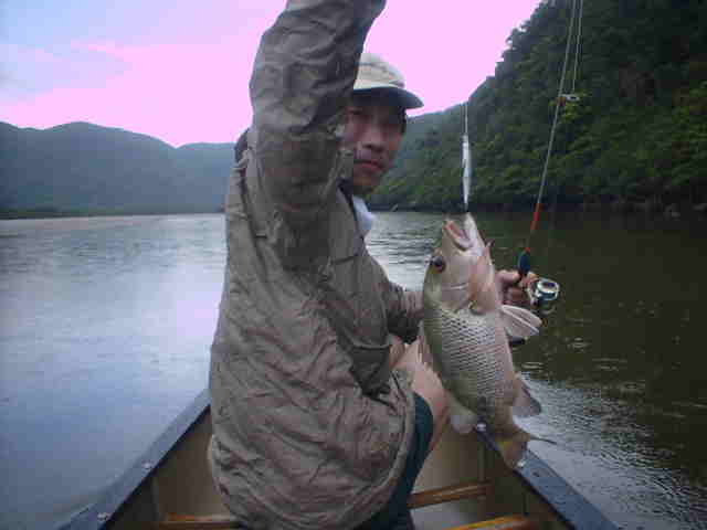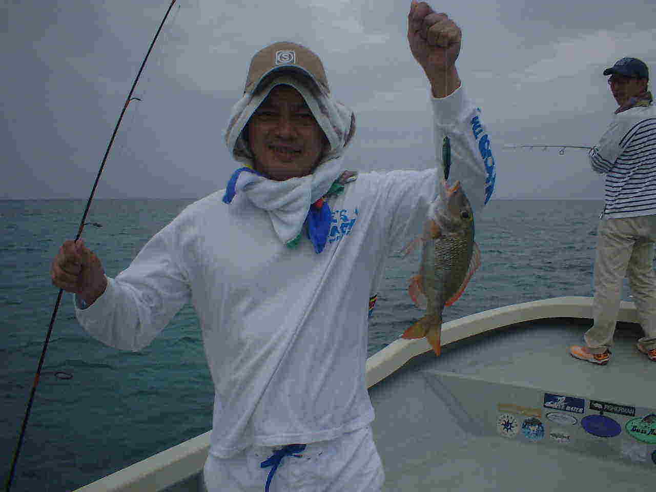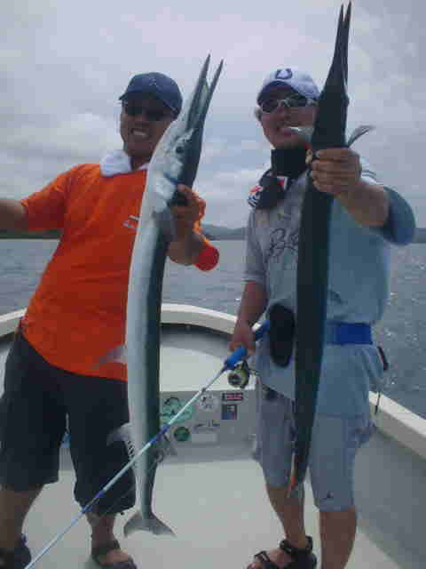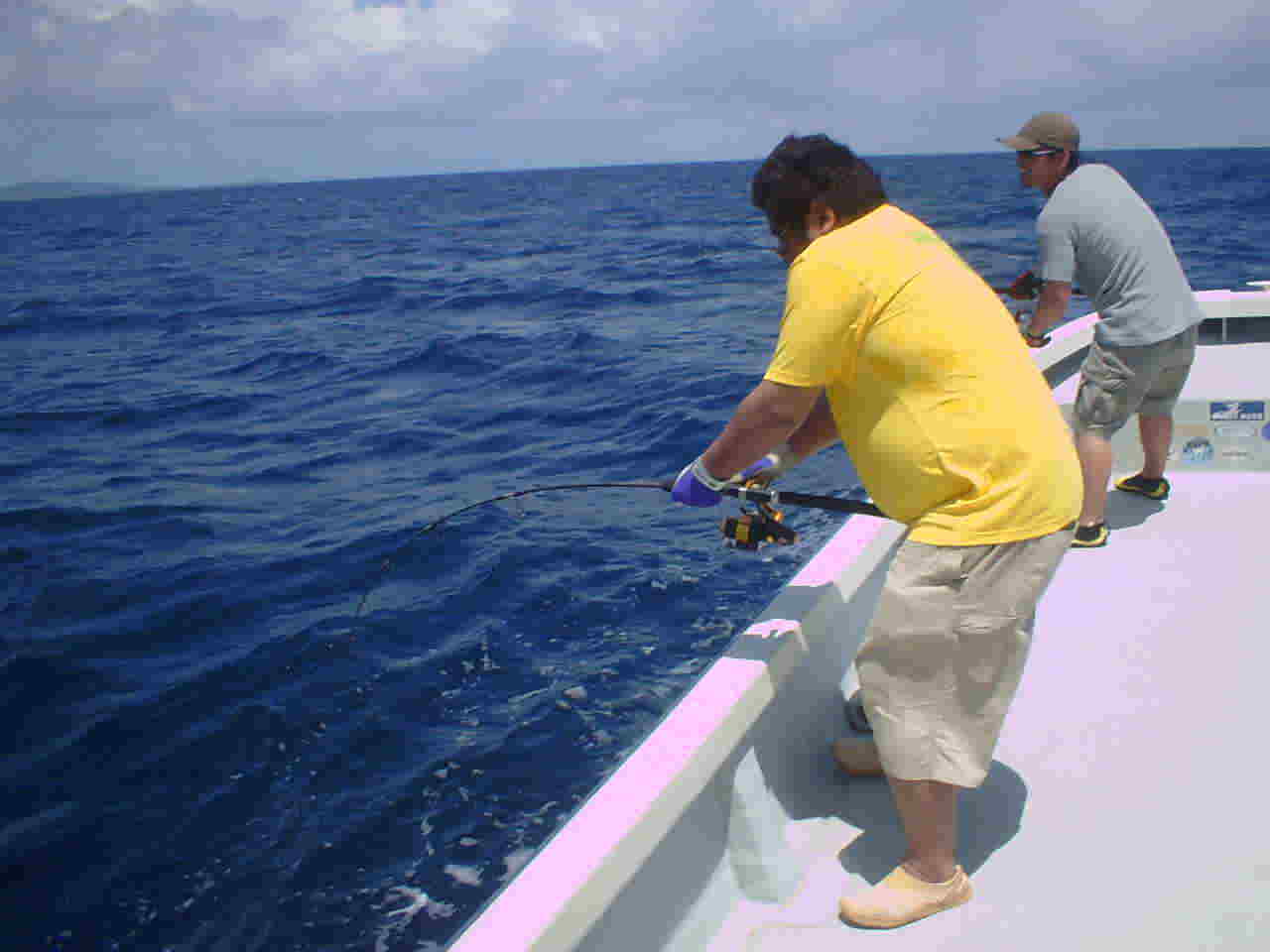 | 沖縄本島から新婚旅行。 本島でも釣りをするがルアーではまだ釣った事が無いという事。 なかなかルアーでは釣れないらしいですね。同じ沖縄なのに魚の数やサンゴの種類、海の綺麗さにすごい驚いていました。「これが沖縄さ〜〜」と、沖縄産まれの 方に言われると何だか複雑ですね〜〜。 |