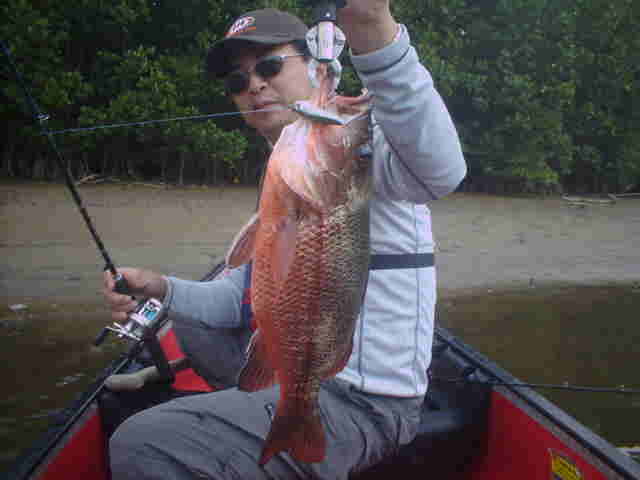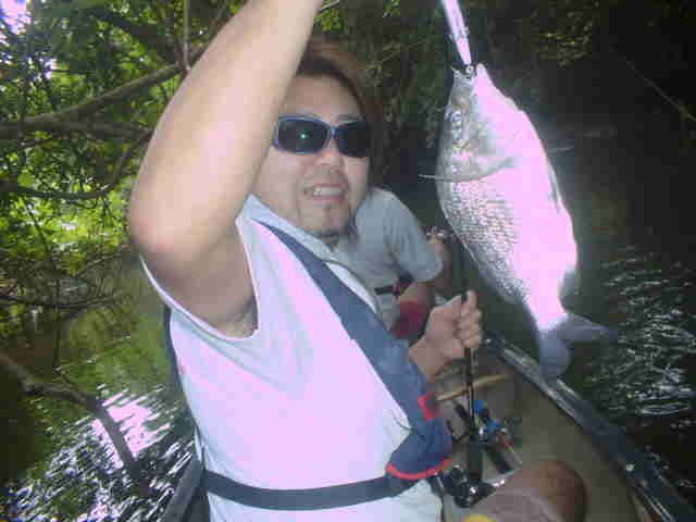 | 久々にでました。マングローブジャック50オーバー!! 前回はベイトタックルを上手くキャスト出来ず苦労していましたが、血をにじむような練習の成果のお蔭で ピンポイントキャストが決まる決まる。 ピンポイントに入れば魚の反応があるので、面白さも倍増です。 |