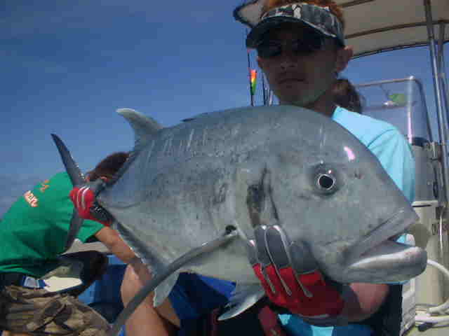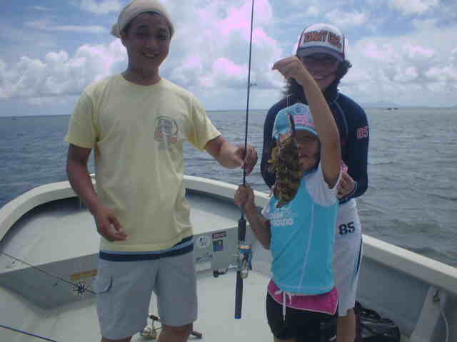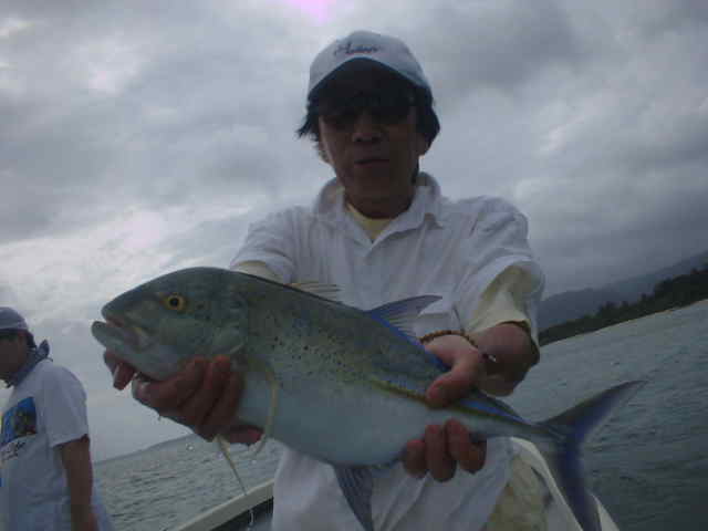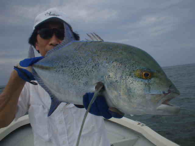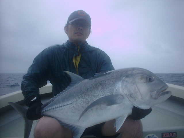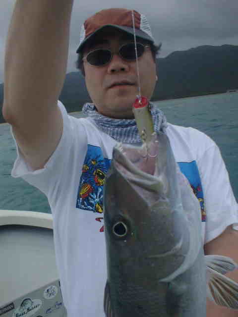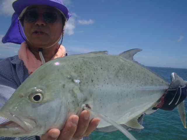 | 今年の梅雨はよく雨が降り連日雨の中のGTFでした。 ゲストの中瀬君は8年前に西表島に1年ほど住んでいて、その頃からGTを狙っていたが釣り上げる事ができなかった。 それから何度か島に訪れGTを狙い続けたが、ヒットするもののキャッチまでいたらなかったのであり。そして今年念願のGTを見事キャッチできた。 釣り上げた時の喜びが耳からはなれません。ホントおめでとう中瀬君。 |