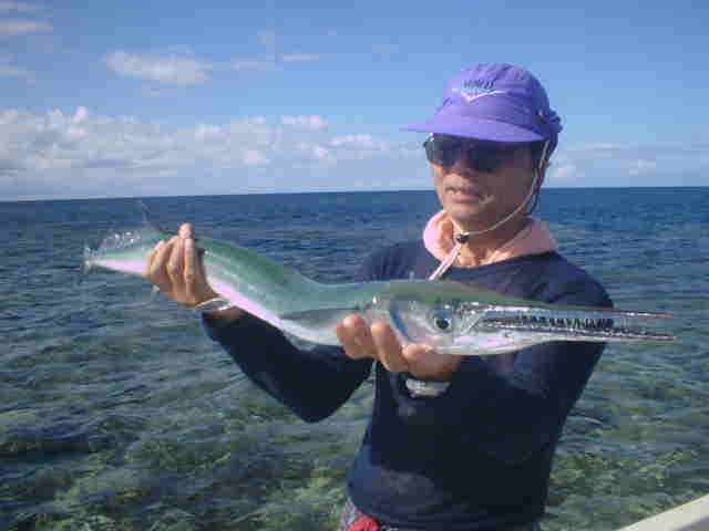 | アジ&ダツ狙いの下島ご夫婦。 さすがダザー良形のアジ&ダツをゲットし満足げな顔をしています。 奥さんは今回が初挑戦でしたが、旦那さんよりダツはかけたかな。 なかなかのファイトでした。 |