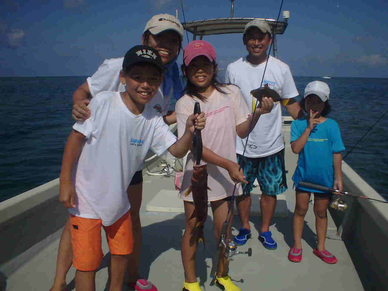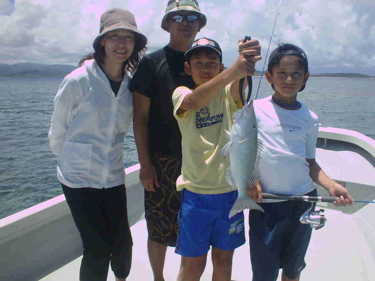 | 夏休みと言うこともあり、”ファミリープラン”が大人気です。 ご家族で釣りをしたり、泳いだりと皆さん大満足のようでした。 小さい子は6歳のお子さんも頑張ってルアーを投げています。 それでも西表が魚が釣れるから皆、大はしゃぎ。 しかし何故だかほとんどの家族のパパが、子どもに負ける釣果で 良い所を見せたいのに見せられないのです・・・西表マジックかな。 |