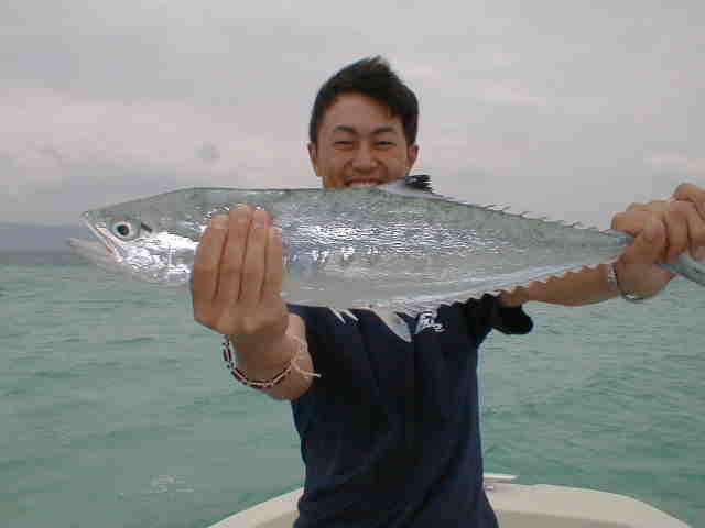 ポイント到着後1投目からダツを釣り絶好調だった大塚さん 普段は渓流でフライを遣っているが、次から次えと色んな魚が 釣れる為、大興奮かなりオハマリモードでした。 ミナミイケカツオ(クウイ-ンフィッシュ) |