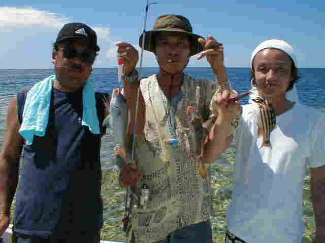 ダイビングと釣りを楽しむ皆さん、リーフの小物釣りから始まり 最近はジギングも初め、どっぷり西表病に掛かっています。 今度はGTに初挑戦するそうです。 |